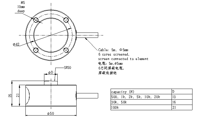 额定载荷 Capacity | N kN | 500 1, 2, 5, 10, 20, 30, 50, | ||