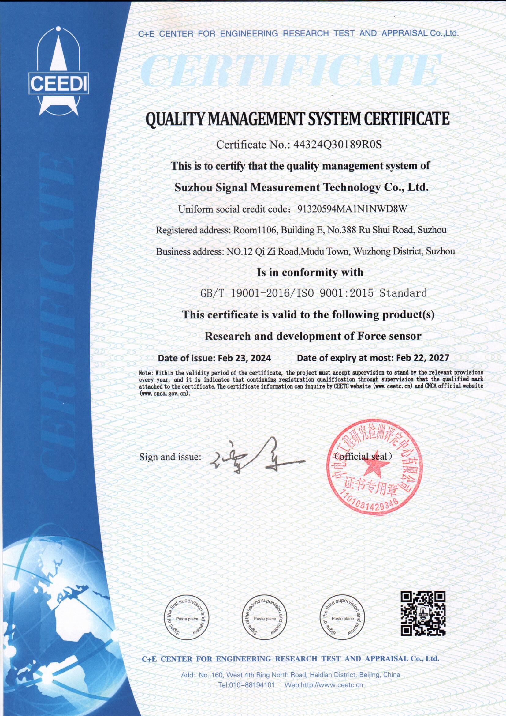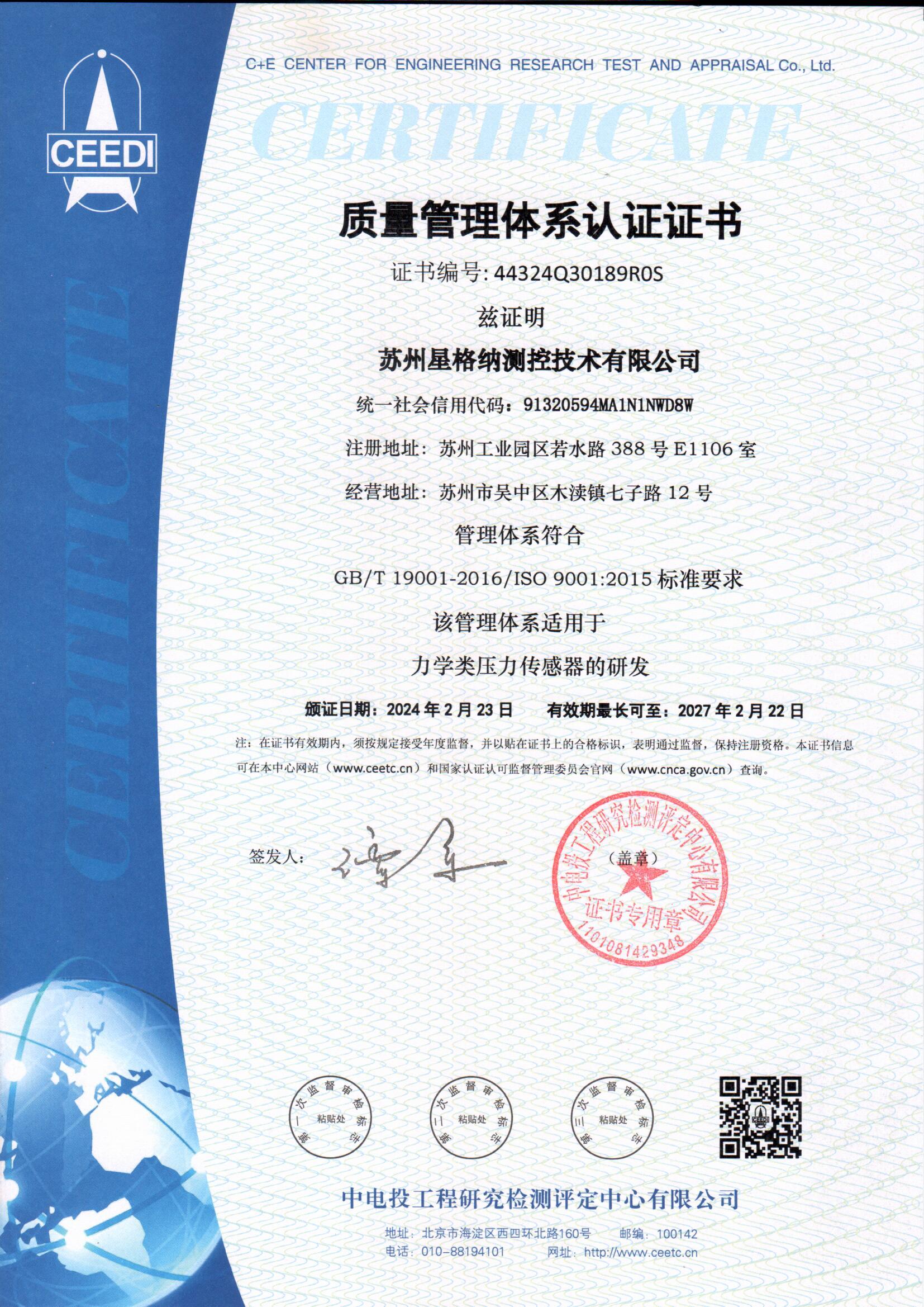 质量认证证书