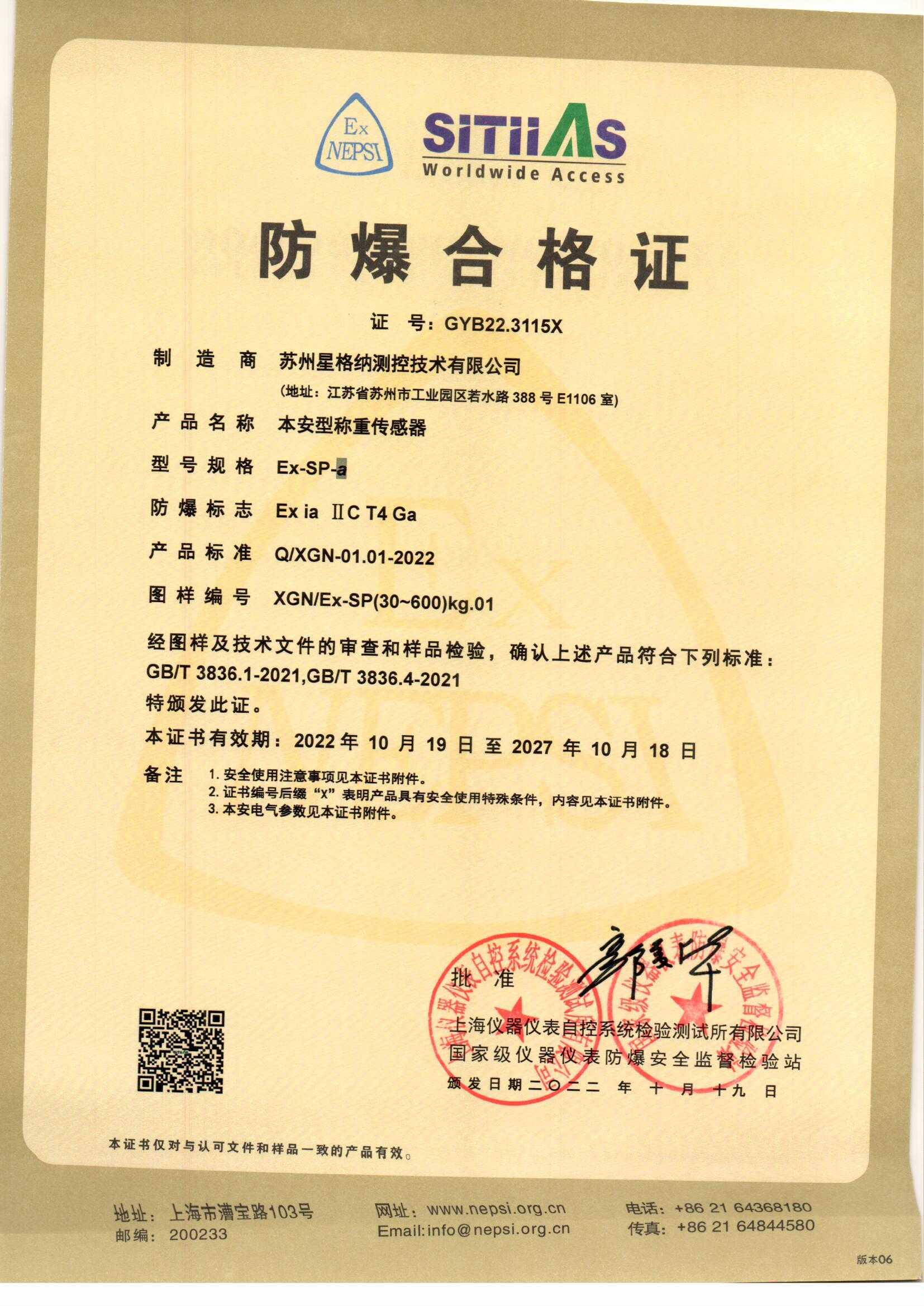 传感器防爆证书