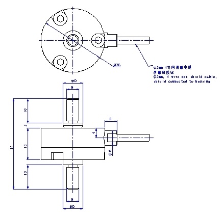 FBC26A-1kN-2 | Force transducer, 26 diameter, 1kN capacity, tension and compression |