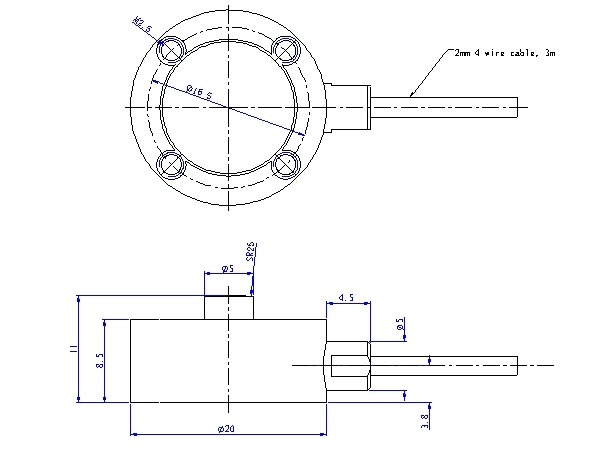 FBC20A-50N-2 | Force transducer, 20 diameter, 50N capacity |